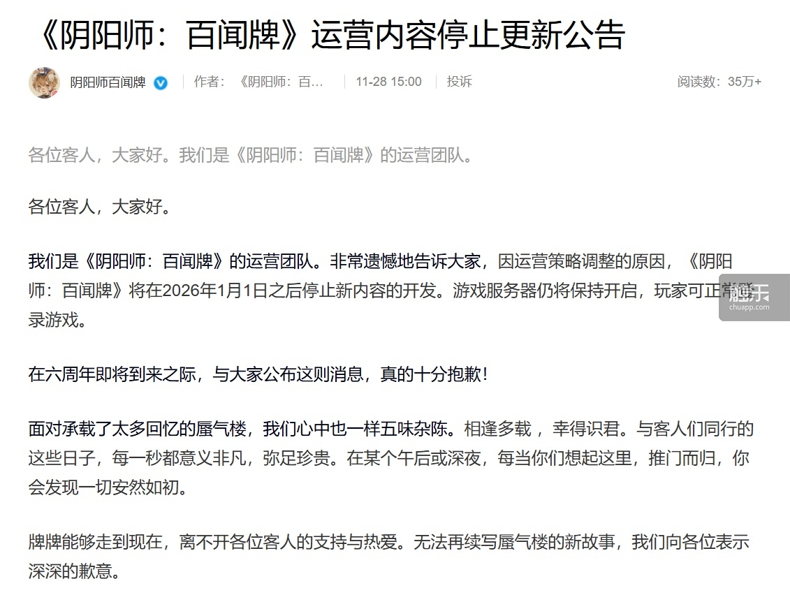 比来,逛戏将正在2026年1月1日之后遏制新内容的开辟。他们将持续进行均衡性调整,